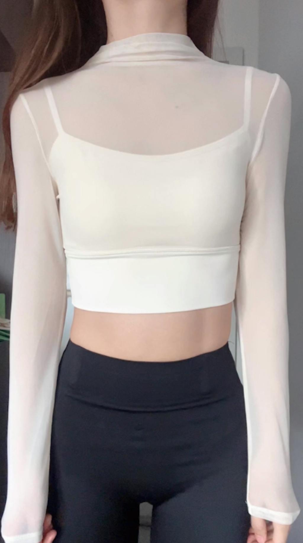 オーガンジー レイヤード パッド付き ロングスリーブ