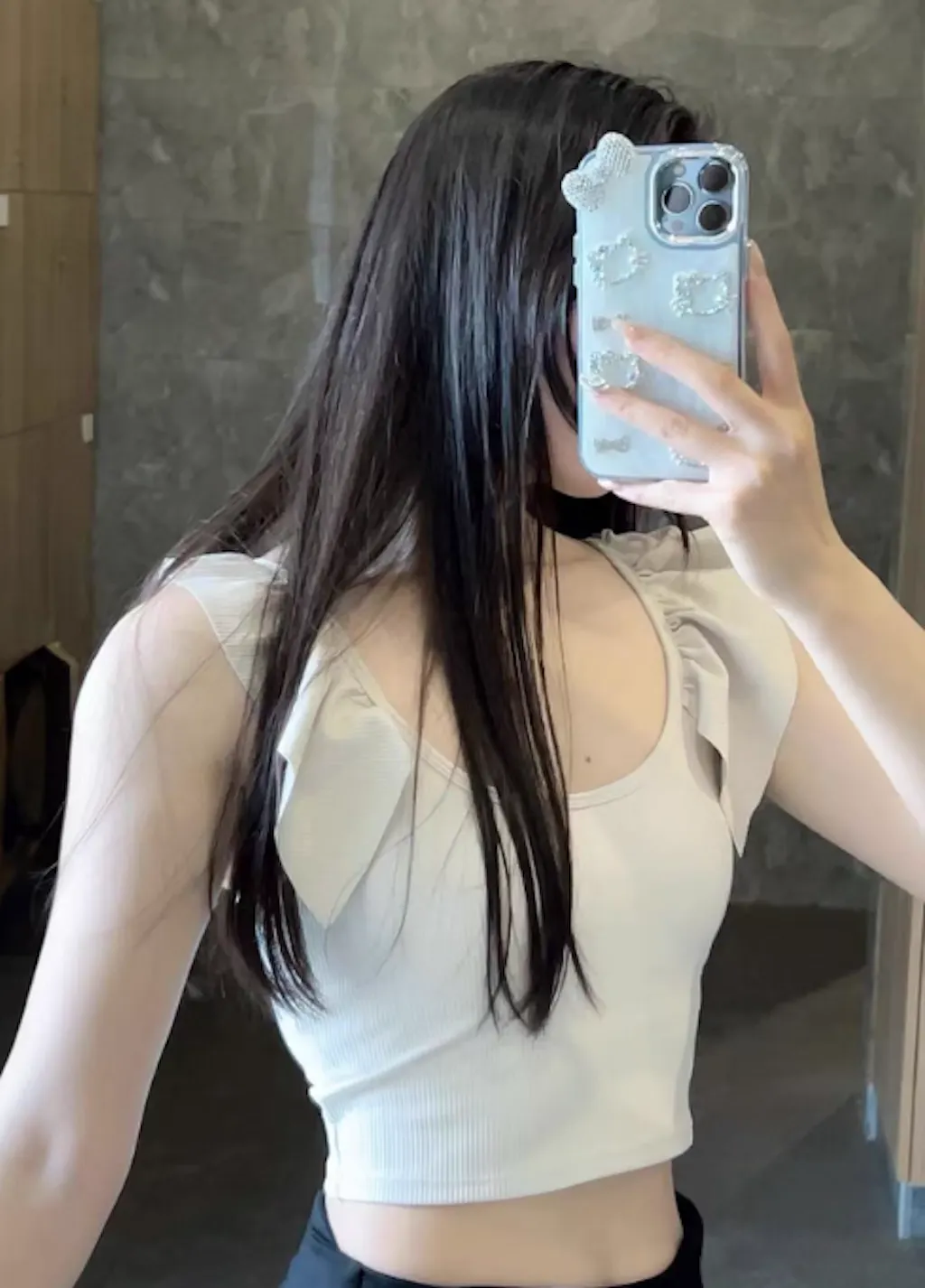 - 袖にフリルのついたフェミニンなデザイン。さりげなく甘さを加えて、大人女子でも着こなしやすい1枚に。