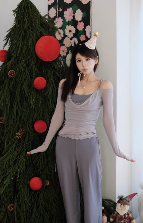 軽やかなメッシュ素材を重ね、お腹まわりをふんわりカバーします。