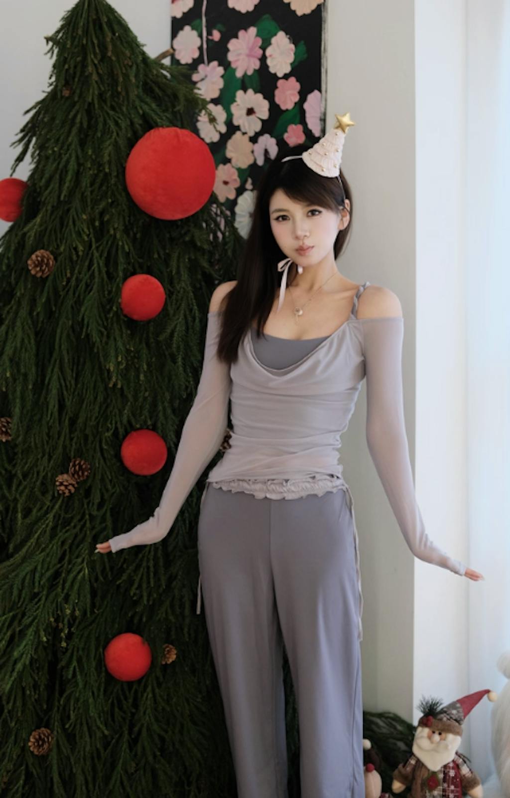 ドレープネック オフショルダー長袖
