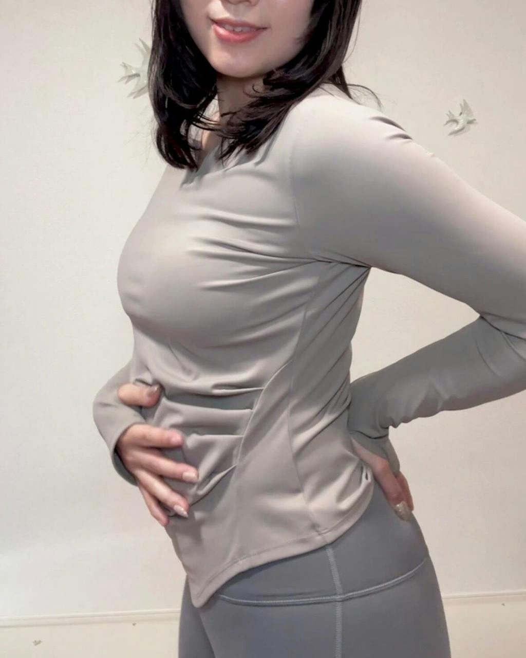 - ラウンドネックにV字カットデザインは、ネックラインを視覚的に引き伸ばし、またネックを解放します。