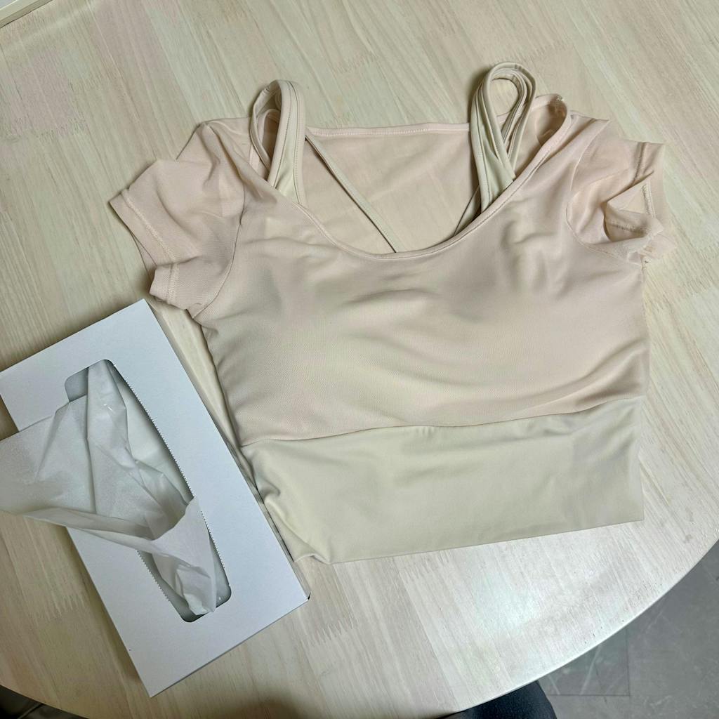 - 取り外しできないブラカップが内蔵されているので、これ一枚で着用可能です。