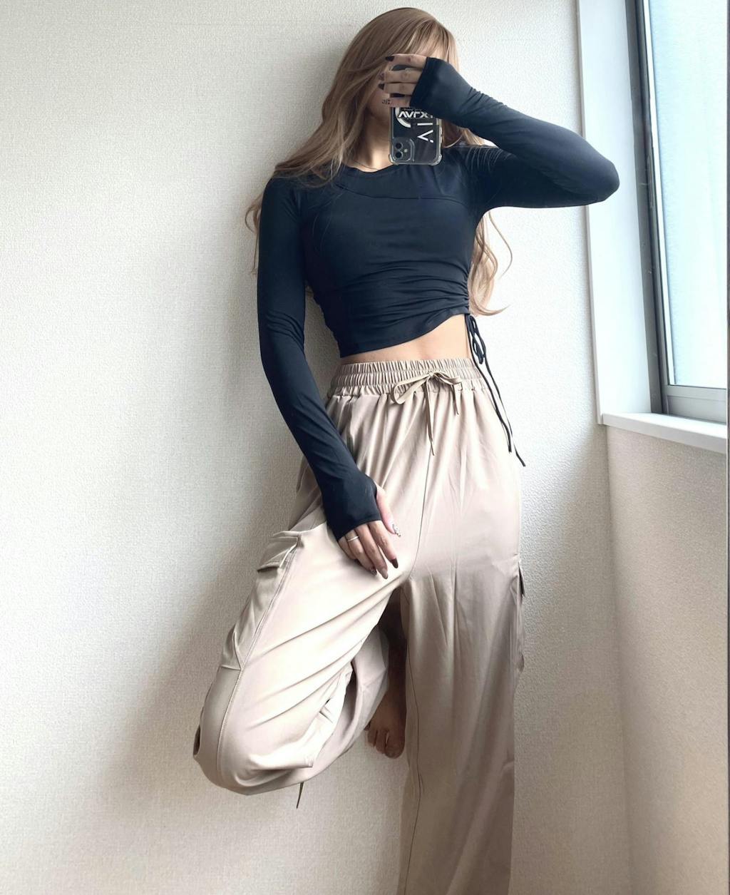 - サイドにはドローストリングをあしらい、お好みの見え感に調整だけでなく、さりげなくカジュアルな雰囲気を演出します。