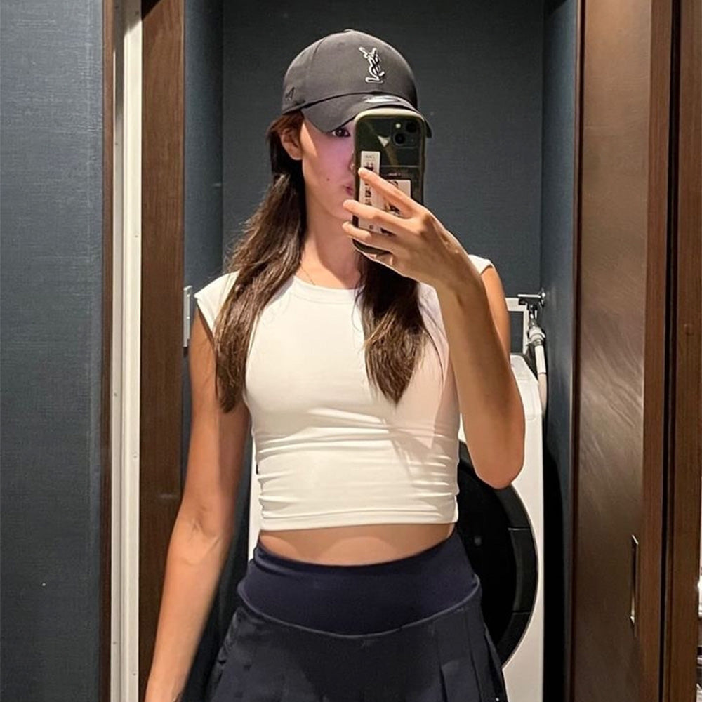 - ブラパッド付きなので1枚で着用可能。トレーニングのしやすさを追求ながらも、エレガントさを兼ね備えたアイテムです。