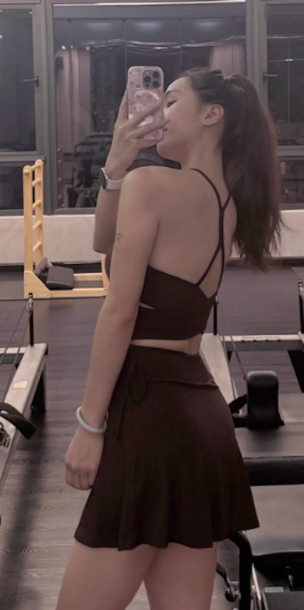 背面が大きく開いたデザインで肩回りの動きを邪魔しない、クロスデザインがさりげないアクセントに。