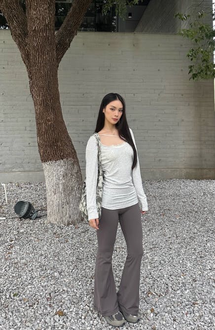 - 深めのUネックでインナーとのレイヤードが楽しめる重ね着向けアイテム。